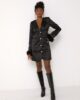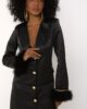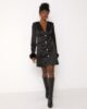 Vestido Blazer Alfaiataria, confeccionado em tecido cetim bucol, com uma linda modelagem alongada, decote em v, mangas longas, e com detalhes nas mangas com aplique de faixa com corrente, e com uma linda pluma.