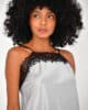 Linda Camisola com alças finas ajustáveis, delicada renda preta no decote e fenda.