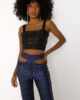 Top cropped de paetê, não pinica e não possui bojo, fechamento em zíper atrás. Brilho é uma forte tendência.