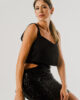 Top cropped alfaiataria, feito com tecido crepe com forro, fechamento em zíper atrás Composição: 96% poliester – 4% elastano