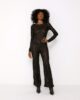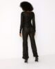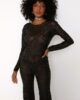 Macacão em renda, decote nas costas, manga comprida e fechamento com zíper. (OBS: NÃO POSSUI FORRO, TECIDO TRANSPARENTE)