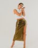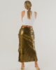 Saia Paetê com abertura na lateral, fechamento com zíper na região lateral.