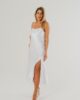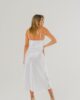Vestido crepe mídi com alças finas ajustáveis, parte inferior com fenda. Possui caimento confortável.