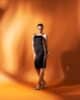 Vestido mídi, com detalhes de tule e corrente dourada nas laterais. Uma peça que esbanja elegância e sensualidade