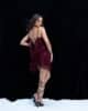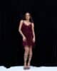 Vestido curto em paetê com franjas, alças finas, e lindo decote nas costas.