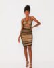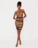 Confeccionado em malha, estampa preto poá, alças trançadas, recortes vazados em seu busto, já seu comprimento traz amplitude quando associado aos drapeados da saia, o que agrega volume sem perder a sutileza, e com forro interno.